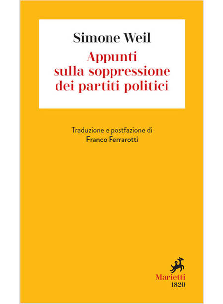 Il saggio della Weil sui partiti politici e sulla loro aspirazione totalitaria, che risulta oggi di grave attualità, viene proposto nella traduzione e con il commento del grande sociologo Franco Ferrarotti, che per primo scoprì e propose in Italia questo testo.