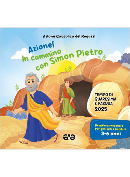 Azione! In cammino con Simon Pietro è il sussidio dell'Azione Cattolica dei Ragazzi dedicato ai bambini dai 3 ai 6 anni e ai loro genitori per vivere insieme il Tempo di Quaresima e Pasqua. Durante le domeniche di Quaresima i bambini vengono accompagnati dal profeta Elia alla scoperta della storia di Gesù. Attraverso le illustrazioni i bambini sono accompagnati da Pietro alla scoperta della storia di Gesù. Attraverso le illustrazioni conosceranno alcuni passaggi della vita di Gesù con i discepoli fino alla sua morte e risurrezione. Per i genitori è uno spazio dedicato alle famiglie, in cui sono presenti suggerimenti e proposte sulla storia di Elia per vivere al meglio il cammino insieme.