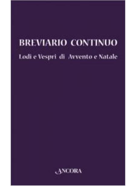 Questo "Breviario continuo" viene incontro all'esigenza dei fedeli e dei pastori di disporre di un libro per l'uso liturgico che sia facilissimo da utilizzare. Il testo della preghiera è stato disposto per intero in maniera continua, senza abbreviazioni, senza rimandi e senza presupporre nel lettore competenze specifiche e conoscenze previe. Il volume raccoglie le preghiere "principali" del mattino e della sera della Liturgia delle Ore secondo il calendario romano di Avvento e Natale.