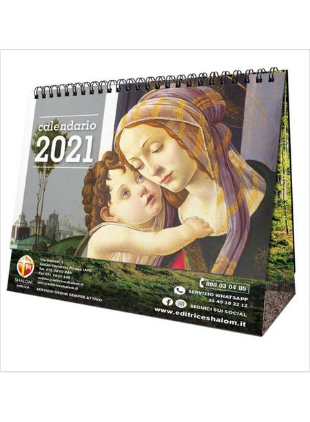 Il calendario da tavolo 2021 è dedicato alla bellezza di Maria e alla bellezza del creato. Le frasi di papa Francesco, tratte dalla sua enciclica “Laudato si’”, permettono di riflettere sull’importanza della cura dell’ambiente che ci circonda. Le immagini, riportate sia sul fronte che sul retro, hanno per soggetto la natura e la Vergine Maria, per ricordarci che insieme a lei e a tutte le creature, camminiamo su questa terra cercando Dio.