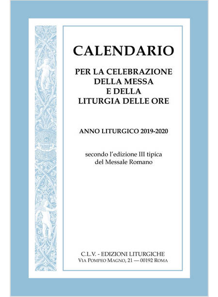 Calendario, in lingua italiana, per la celebrazione della Messa e della Liturgia delle Ore per l'anno liturgico 2019-2020.