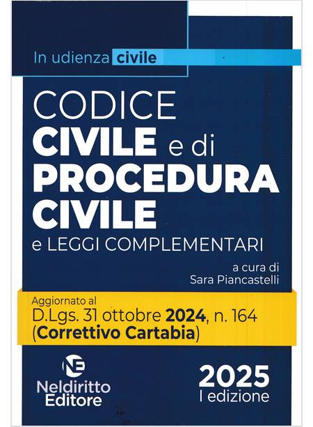 Il Codice dell'udienza civile e di procedura civile, Neldiritto Editore, rivolto a avvocati, magistrati, studiosi, consente di visualizzare in modo chiaro e immediato tutte le novità introdotte dal Decreto Correttivo Cartabia del 2024, oltre che dai più recenti provvedimenti legislativi intervenuti a modificare il codice di rito e il diritto civile sostanziale.