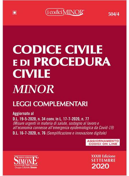 CODICE CIVILE E DI PROCEDURA CIVILE MINOR LEGGI COMPLEMENTARI