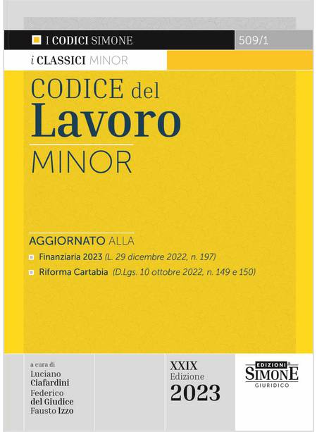 CODICE DEL LAVORO MINOR XXIX EDIZIONE 2023
