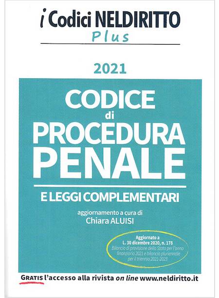 CODICE DI PROCEDURA PENALE E LEGGI COMPLEMENTARI 2021 AGGIORNATO A L. 30-12-2020