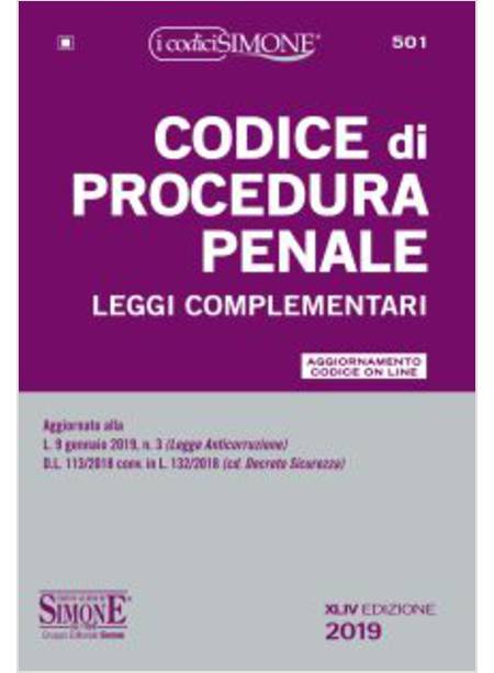 CODICE DI PROCEDURA PENALE LEGGI COMPLEMENTARI XLIV EDIZ. 2019