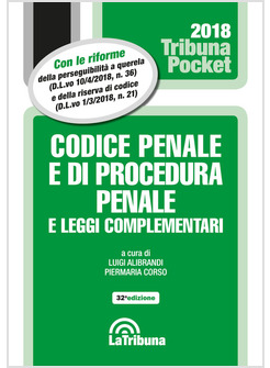L'opera è aggiornata con: il D.L.vo 10 aprile 2018, n. 36, nuove norme sulla procedibilità a querela di parte; il D.L.vo 1 marzo 2018, n. 21, che introduce la riserva di codice in materia penale; il D.L.vo 6 febbraio 2018, n. 11, riforma delle impugnazioni penali; la L. 11 gennaio 2018, n. 6, norme sulla protezione dei testimoni di giustizia; la L. 11 gennaio 2018, n. 4, recante modifiche al Codice penale e al Codice di procedura penale, in materia di disposizioni in favore degli orfani per crimini domestici; il D.L.vo 29 dicembre 2017, n. 216, nuove norme sulle intercettazioni di conversazioni e comunicazioni.