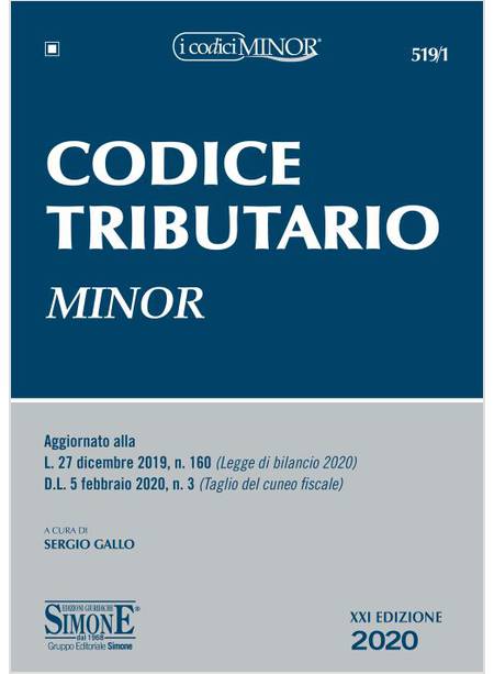 Il Codice, giunto alla XXI edizione, è un compendio organico e sistematico del sistema fiscale italiano e contiene, oltre alle leggi che disciplinano i singoli tributi erariali, regionali e locali, anche le disposizioni più significative in materia di accertamento, riscossione, violazioni tributarie e contenzioso. Per queste sue caratteristiche opportunamente si affianca al Codice Maior (Vol. 519) pubblicato da questa Casa editrice, che presenta un maggior livello di approfondimento e dettaglio nei richiami normativi ed una diversa sistematica delle sezioni. Ovviamente, tutte le disposizioni modificative di leggi fiscali riportate nel volume sono state inserite all’interno dei testi normativi. Le altre disposizioni più significative di carattere tributario emanate negli ultimi mesi, sono raccolte in una ricca e curata appendice. Tra le disposizioni più significative di quest’ultimo periodo di cui il codice tiene conto segnaliamo: il D.L. 30-4-2019, n. 34, conv. in L. 58/2019 (Decreto crescita); il D.L. 26-10-2019, n. 124, conv. in L. 157/2019 (Decreto fiscale 2020); la L. 27-12-2019, n. 160 (Legge di bilancio 2020);il D.L. 5-2-2020, n. 3 (Decreto taglio cuneo fiscale). Infine, per una consultazione mirata e veloce, sono stati predisposti un indice analitico alfabetico ed un indice cronologico.