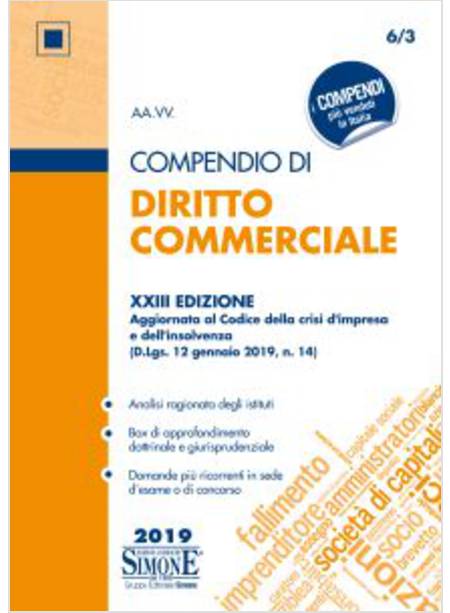 Il testo espone in modo semplice e lineare anche le problematiche più complesse del Diritto Commerciale, caratterizzato da norme congegnate per soddisfare determinate esigenze del mondo degli affari e, quindi, lontane da chi si accosta alla materia per la preparazione di un esame universitario, di un concorso o di un’abilitazione professionale.