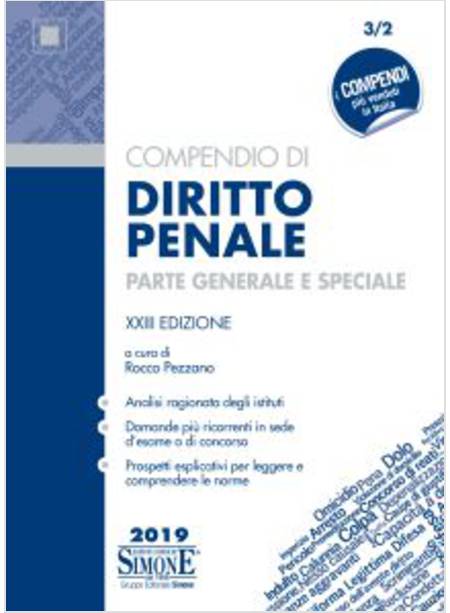 Questa nuova edizione del «Compendio» di Diritto Penale (parte generale e speciale), pur mantenendo inalterato l’approccio alla disamina degli istituti, evitando inutili approfondimenti (tipici di una trattazione manualistica di più ampio respiro), fornisce, accanto alle nozioni di diritto penale sostanziale, taluni fondamentali e mirati spunti giurisprudenziali e dottrinari, per dare la possibilità, a quanti necessitano di un testo agile e sintetico, di soffermarsi prevalentemente sugli argomenti di maggior interesse anche alla luce dei più attuali contrasti interpretativi.