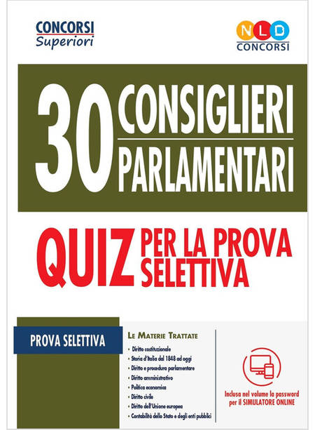 CONCORSO 30 CONSIGLIERI PARLAMENTARI. QUIZ PER LA PROVA SELETTIVA. CON SOFTWARE