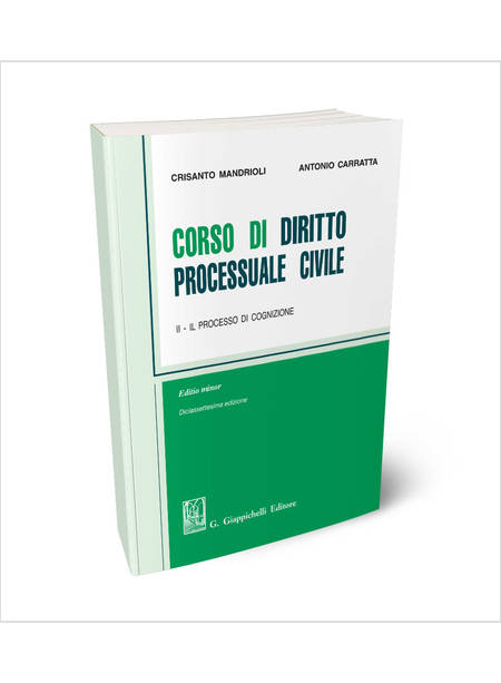 Premessa alla diciassettesima edizione. – Premessa alla prima edizione. – I. La disciplina del rito ordinario di cognizione nei suoi aspetti generali. – II. Il rito ordinario di cognizione. La fase introduttiva. – III. La fase di istruzione. – Sezione prima: L’istruzione in senso ampio. – Sezione seconda: La comparizione e la trattazione. – Sezione terza: L’intervento dei terzi. – Sezione quarta: La rimessione della causa al collegio o in decisione. – Sezione quinta: Le cause riservate alla decisione collegiale e il procedimento davanti al tribunale in composizione monocratica. – IV. L’istruzione in senso stretto o istruzione probatoria. – Sezione prima: La prova in generale. – Sezione seconda: I procedimenti istruttori di integrazione. – Sezione terza: Assunzione dei mezzi di prova. – Sezione quarta: Le prove precostituite o documenti e l’esibizione. – Sezione quinta: Le prove costituende e il rendimento dei conti. – V. La fase di decisione. – VI. Le vicende anormali del processo. – VII. Il processo davanti al giudice di pace. – VIII. Le impugnazioni. – Sezione prima: Le impugnazioni in generale. – Sezione seconda: L’appello. – Sezione terza: Il ricorso per cassazione e il giudizio di rinvio. – Sezione quarta: La revocazione. – Sezione quinta: L’opposizione di terzo.