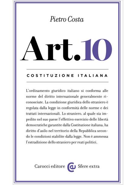 Quali pretese può avanzare un individuo nei confronti di una comunità politica cui non appartiene? È a queste difficili domande che risponde l’articolo 10 della nostra Costituzione: sono domande che hanno una lunga storia alle spalle, ma acquisiscono forme e urgenze nuove nel nostro presente. Di fronte al fenomeno – inedito per l’Italia – dell’arrivo di migranti, i principi costituzionali mostrano tutta la loro attualità e sollecitano l’odierna cultura politico-giuridica a superare le tradizionali chiusure statualistiche e a prendere seriamente in considerazione i diritti umani enunciati dai documenti internazionali.