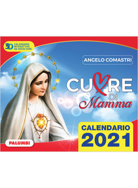 Le edizioni Palumbi, dopo il grande successo degli anni precedenti di “Maria Regina della Pace”, per il 5° anno propongono “Cuore di Mamma”, con le preghiere, il Rosario e testi inediti di ANGELO COMASTRI, e poi il santo del giorno, meditazioni mariane, il sole, la luna, previsioni del tempo, rubriche, ricette, utilità, foto a colori, elegante veste tipografica.