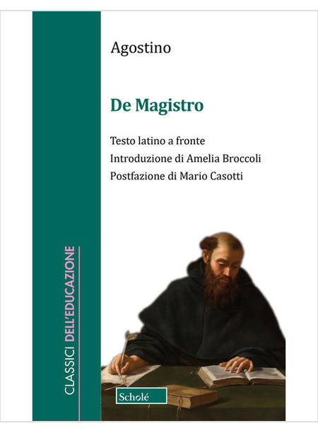 Discorrendo con il figlio sedicenne Adeodato, Agostino s'interroga sul ruolo del linguaggio nella relazione educativa, a partire dal rapporto tra le parole e le cose. Il dialogo, qui proposto con testo latino a fronte e note di commento, inaugura la riflessione occidentale sul ruolo del maestro e sul significato dell'insegnamento. Una delle prime, spiazzanti conclusioni è che le parole non insegnano e i maestri non hanno alcun ruolo nella formazione dei discenti. Si tratta, però, di un risultato non definitivo, in un confronto aperto che non intende offrire risposte risolutive, ma affrontare dialetticamente il problema filosofico dell'educazione. Le domande ancora attuali che il dialogo pone costringono a ridefinire il compito del maestro e riportano al centro la necessità di avvicinare il discente al sapere aiutandolo a rintracciare la motivazione nella propria interiorità.