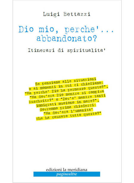 Se pensiamo alle situazioni o ai momenti in cui ci chiediamo: "Ma perché Dio ha permesso questo?", "Ma dov'era Dio mentre si compiva Auschwitz?" o "Dov'è mentre tanti immigrati muoiono in mare?", dovremmo prima chiederci: "Ma dov'era l'umanità che ha causato tutto questo? Dio ci ha creati liberi e responsabili e dobbiamo credere che proprio in Gesù 'abbandonato' Egli ricupera le nostre deviazioni e le nostre resistenze, mettendoci di fronte alle nostre responsabilità e suscitando chi ci può incamminare ed accompagnare in questo ricupero. È per questo che anziché ripiegare sul passato e rimpiangere le occasioni perdute, incolpare quanti non ci hanno permesso di sviluppare possibilità ritenute positive, dovremmo incominciare a renderci conto che le contraddizioni di oggi, che hanno le loro radici nelle vicende di ieri, sono da riesaminare, non ovviamente per cambiarle, cosa ormai impossibile, ma per imparare dalle cattive scelte di ieri a non ripeterle oggi e ad orientarci, invece, con le scelte di oggi, a rimediare agli errori di ieri. Quando dunque ci sentiamo abbandonati dal Signore, è perché non siamo entrati pienamente nel Suo mistero e allora dobbiamo chiederci: "Mio Dio, mio Dio, perché Ti ho abbandonato?" Perché Ti abbandono? E se abbandono Te, non finisco per abbandonare anche i fratelli, amandoli sì, ma non come Tu ci hai amati donando davvero tutto Te stesso, assumendo la nostra umanità e "svuotandola".