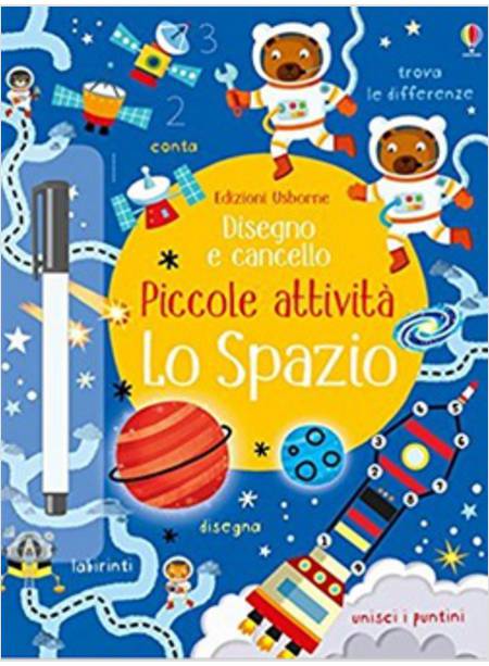 Trova le differenze tra le varie tute da astronauti, unisci i puntini in una base spaziale, trova le stelle cadenti e tanto altro in questo originale libro di attività. Pensato per aiutare i bambini a sviluppare le abilità di fare i conti, di osservazione e controllo della penna. Grazie alle pagine plastificate riscrivibili e al pennarello cancellabile le attività si possono fare e rifare mille volte! Età di lettura: da 3 anni.