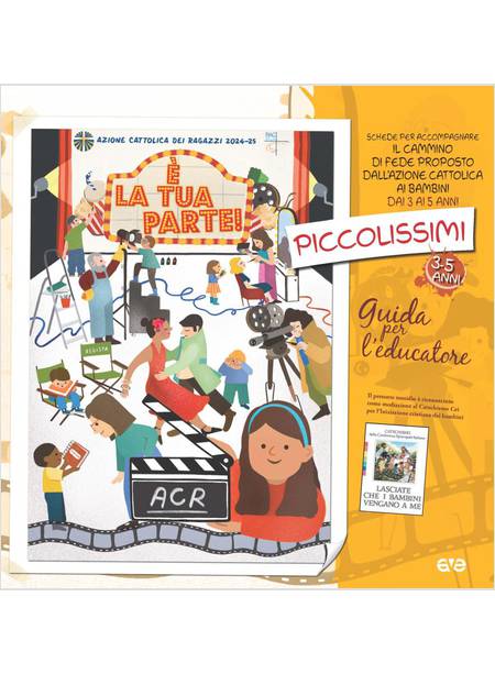 Il testo che hai tra le mani è chiamato Guida di arco e raccoglie la proposta formativa dell'Azione cattolica ai bambini dai 3 ai 5 anni (Piccolissimi), mediando il catechismo Lasciate che i bambini vengano a me. Contiene suggerimenti per le attività con i bambini, strutturate in un cammino organico lungo tutto l'anno e indicazioni sul metodo scelto dall'Ac per accompagnare i piccoli alla scoperta della fede. Insieme alla guida trovi Work in progress (Wip), il testo quest'anno completamente rinnovato per la formazione degli educatori-catechisti, da usare personalmente o in gruppo, e InFamiglia, un sussidio-calendario per tutta la famiglia che contiene spunti da vivere in casa per accompagnare e sostenere il cammino dei bambini. Strumenti preziosi che ti supportano nel servizio educativo, permettendoti di accompagnare i bambini che ti sono affidati nel loro cammino di fede. Avranno così la possibilità di scoprire l'originalità dei propri carismi e capiranno, attraverso il bellissimo mondo cinematografico, che c’è un posto per tutti e c’è sempre qualcuno pronto a coinvolgerli. Ognuno di loro potrà sentire rivolto a sé l’invito: questa "È LA TUA PARTE!".