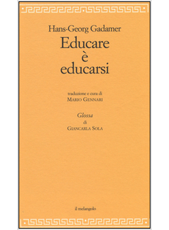 Scrive Hans-Georg Gadamer in "Erziehung ist sich erziehen": "Per iniziare, sostengo: l'educazione (Erziehung) è educare se stessi (sich erziehen), la formazione (Bildung) è formare se stessi (sich bilden)". "Educare è educarsi", contiene il testo di una bellissima e lucida conferenza tenuta dal filosofo di Heidelberg all'età di novantanove anni. In essa vengono anzitutto trattati due grandi temi: la formazione e l'educazione dell'uomo. Il successo editoriale in Germania è dipeso anche dal linguaggio colloquiale con cui sono affrontati i problemi relativi alla scuola, all'infanzia, alla gioventù, all'essere genitori, allo studio delle lingue, ma anzitutto ai modi dell'educare. Gadamer li declina partendo dal fatto che, per diventare degli esseri "educati", occorre imparare a "educare-se-stessi" prima ancora che la famiglia, la scuola e la società contribuiscano a farlo. Il volume è curato da Mario Gennari, che ne è anche il traduttore. Alla sua Postfazione segue una Glossa di Giancarla Sola.