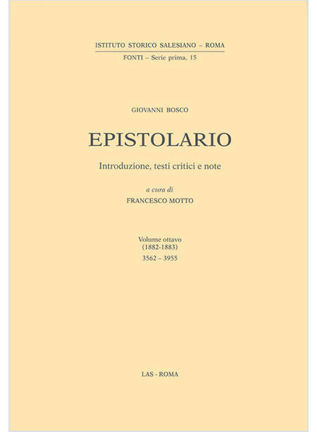 Questo ottavo volume dell’epistolario di don Bosco raccoglie 394 lettere da lui scritte o sottoscritte nel biennio 1882-1883. Molte risultano sconosciute sia alle Memorie Biografiche, sia all’Epistolario curato da don Ceria; altre poi potranno sempre emergere da qualche archivio pubblico e privato, soprattutto di famiglie nobili. Quasi un centinaio sono quelle in lingua francese, due in spagnolo (1883) e quattro in latino (1882). Alle 394 lettere qui elencate in ordine cronologico vanno poi aggiunte le 21 lettere attestate, ma di cui si conosce solo sommariamente il contenuto (Appendice).