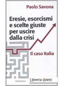 Il lavoro esamina le decisioni di politica economica susseguitesi in Italia dalla nazionalizzazione dell'industria elettrica in poi, definendole "eresie", ossia dottrine contrarie ai dogmi della razionalità economica, le quali hanno dato vita a puri "esorcismi", riti che hanno lasciato le cose come prima. Infatti, nonostante le promesse di tagli, la spesa pubblica è continuata a crescere imperterrita, come pure, ma meno, la pressione fiscale, facendo così lievitare l'indebitamento pubblico. Lo Stato si è impossessato di metà del reddito annuo del Paese e non pare ancora soddisfatto, dato che va aggredendo in modo indistinto la ricchezza. L'autore individua nella "manovra" la madre di tutti i mali, una pratica di cui si avvale ora anche l'Unione Europea. La crisi che stiamo vivendo è il conto che gli italiani sono chiamati a pagare per gli errori commessi dagli Stati Uniti nel dopo Bretton Woods, non avendo adeguato le regole sul piano della moneta e dei cambi, e dall'Unione Europea nel dopo Trattato di Maastricht, per non aver attuato il disegno di unificazione politica che l'aveva indotta a creare l'euro. Il lavoro indica anche le "scelte giuste" da prendere per riportare l'Italia sul sentiero della ripresa produttiva e dell'occupazione. Il lavoro si chiude con un esame critico della Manovra Monti e delle decisioni prese a Bruxelles il 9 dicembre scorso che sono la continuazione della concezione di una "vecchia" Europa.