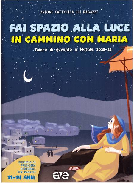 Fai spazio alla luce, in cammino con Maria è un sussidio pensato dall'Azione Cattolica, dedicato ai ragazzi dagli 11 ai 14 anni per vivere insieme di Avvento e Natale: la figura di Maria, donna coraggiosa e madre capace accogliere con fiducia. e proteggere con amore, accompagna ragazzi nel cammino che conduce alla nascita del Signore, attraverso in racconto degli episodi dell'Avvento e del Natale vissuti da lei in prima persona.