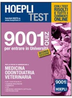 9001 quiz ufficiali, interamente risolti, per esercitarsi nelle materie d'esame e per verificare il proprio livello di preparazione reale. Il volume, aggiornato sulla base delle domande realmente assegnate nel corso degli ultimi anni, consentirà di acquisire rapidamente quella familiarità necessaria allo svolgimento dei test ufficiali. I 9001 quiz di Medicina, completi delle relative soluzioni e interamente commentati online, offriranno la possibilità di verificare la propria performance in una situazione simile a una vera prova d'esame, mettendo nelle migliori condizioni di superare il test ed entrare subito nel mondo dell'Università. Online su www.hoeplitest.it si possono trovare: soluzioni e commenti di tutti i quiz; aggiornamenti e integrazioni agli argomenti trattati; simulatore con prove d'esame per verificare la propria preparazione; quiz assegnati nel corso degli ultimi anni; ultime notizie su leggi e normative per le diverse sedi.
