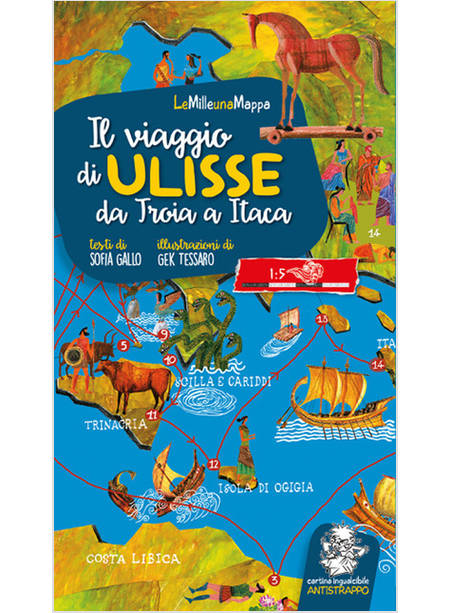 Il viaggio, le scoperte, gli incontri di un mito senza tempo, simbolo della sfida all'ignoto, dell'insaziabile desiderio di conoscenza: avventura allo stato puro. Cartina 66x98 cm ingualcibile, idrorepellente, indistruttibile; in un solo colpo d'occhio situazioni, luoghi, personaggi; legenda dettagliata; l'itinerario tappa per tappa come lo immaginiamo noi: impossibile perdersi; con curiosità sull'Odissea e su Omero, sul cavallo di Troia e la Tela di Penelope. Età di lettura: da 5 anni.