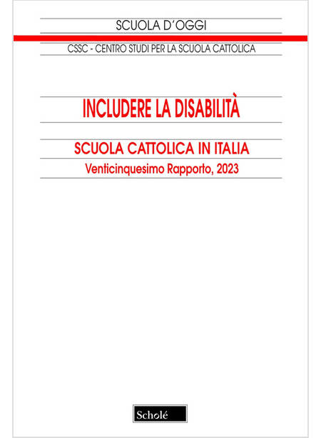 Per le scuole cattoliche l'inclusione è connaturata alla loro identità. Dietro l'accoglienza degli studenti con speciali bisogni educativi c'è l'antropologia cristiana e la missione della Chiesa, c'è una tradizione pedagogica e ci sono tanti carismi educativi che hanno prodotto i loro effetti su tutto il sistema scolastico, a livello nazionale e mondiale. Questo Rapporto vuole offrire un contributo alla riflessione ed è articolato, come d'abitudine, in tre parti. La prima affronta gli aspetti generali dell'argomento, soffermandosi sul quadro normativo vigente che esplicita le scelte strategiche essenziali nei confronti della disabilità, dei disturbi specifici dell'apprendimento e dei bisogni educativi speciali. La seconda parte offre strumenti per conoscere meglio il problema, sia in termini quantitativi, attraverso l'analisi dei dati statistici, sia in termini qualitativi, con la presentazione di esperienze significative di inclusione scolastica e sociale. La terza parte si sofferma sui mediatori necessari per qualsiasi azione educativa: accanto allo specialismo dell'insegnante di sostegno c'è da ripensare la funzione di tutti i docenti, se la scuola deve diventare inclusiva nel suo insieme. Oltre i suoi confini, si deve poi considerare l'ambiente familiare in cui vivono gli alunni con disabilità e che con loro interagisce. Il Rapporto si conclude con la consueta appendice statistica, che descrive numericamente la situazione delle scuole cattoliche italiane nell'anno scolastico 2022-23.