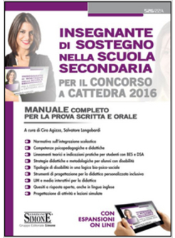 Un’importante novità del concorso 2016 riguarderà, come detto, l’introduzione di distinte prove previste per gli aspiranti docenti in possesso di specializzazione per i posti di sostegno didattico ad alunni con disabilità. Proprio per rispondere alle esigenze formative di tali candidati, questo manuale, destinato ai futuri docenti di sostegno di scuola secondaria, è così strutturato: