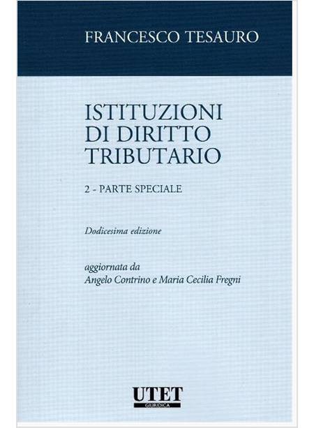 A distanza di trent’anni dalla prima edizione, presentiamo la dodicesima edizione aggiornata della Parte speciale delle “Istituzioni di diritto tributario”. Le “Istituzioni” di Francesco Tesauro rappresentano un “classico” nel panorama di manuali di diritto tributario, e hanno formato nel corso degli anni generazioni di studenti, studiosi e operatori della materia, contribuendo in modo fondamentale alla crescita e allo sviluppo sistematico del settore. Le “Istituzioni di diritto tributario” sono sempre state l’opera di una sola mano e di un solo Autore, il Professore e Maestro, che è prematuramente scomparso il 4 febbraio di quest’anno, lasciando un vuoto incolmabile, anche sul piano umano, in tutti coloro che hanno avuto l’occasione e la fortuna di conoscerlo e frequentarlo.