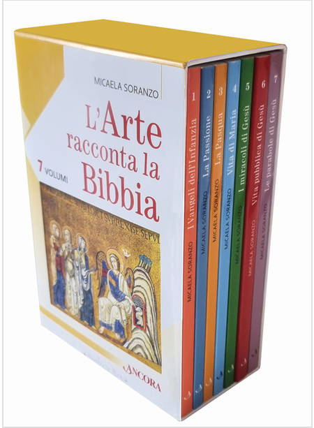 Questo cofanetto regalo contiene la serie completa della collana L'arte racconta la Bibbia che si propone di insegnare la "grammatica" dell'arte cristiana, mostrando come l'arte di tutti i tempi abbia riletto e interpretato personaggi ed episodi della Bibbia. A partire dal testo biblico e dalle altre fonti che hanno ispirato gli artisti, l'autrice esplora i vari temi iconografici con linguaggio divulgativo, ma fondato su rigorose basi scientifiche. Ogni capitolo presenta in apertura il testo biblico o degli apocrifi, a cui segue la presentazione dei modelli iconografici, per descrivere poi l'ambientazione della narrazione pittorica, i suoi protagonisti e gli elementi simbolici utilizzati. Scandaglia poi i riferimenti artistici, organizzati secondo categorie fondamentali che aiutano il lettore a orientarsi con precisione: i protagonisti e gli altri personaggi, l'ambiente, gli elementi simbolici, i modelli iconografici (che mostrano con quanta creatività gli artisti reinventano i moduli codificati preesistenti).