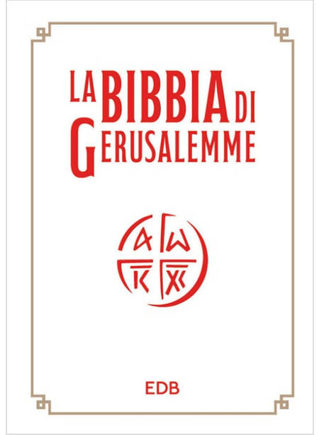 La Bibbia di Gerusalemme - edizione gigante per la famiglia si rinnova nella grafica di copertina, in occasione del 50° anniversario dell'edizione italiana della Bibbia di Gerusalemme. Di grandi dimensioni (cm 22,2x30), con copertina bianca e cartiglio interno per dedica, si presta in modo particolare per essere utilizzata come dono in occasioni importanti e in casa da tutta la famiglia. La versione per la famiglia mantiene negli interni le caratteristiche che l'hanno contraddistinta: i caratteri in corpo maggiore, utilizzati sia per il testo che per le note a piè pagina, garantiscono chiarezza e leggibilità, favorendo una fruizione domestica, quotidiana, e valorizzano i momenti di preghiera e la lettura della Parola di Dio nel contesto familiare.