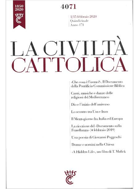LA CIVILTA' CATTOLICA 4071 1/15 FEBBRAIO 2020 CHE COS'E' L'UOMO