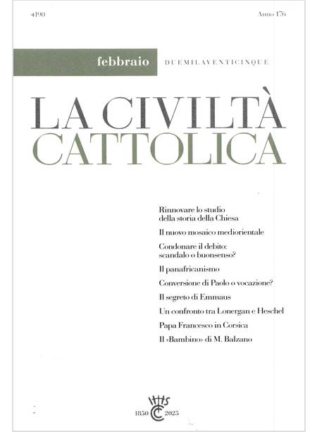 Descrizione di "LA CIVILTA' CATTOLICA 4190 FEB. 25 RINNOVARE LO STUDIO DELLA STORIA DELLA CHIESA"