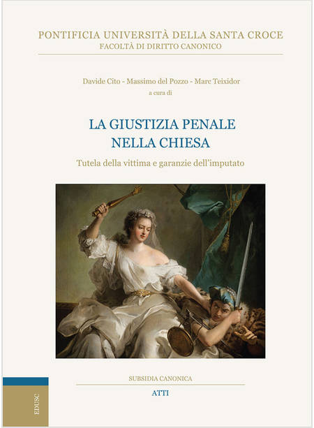 Il presente volume raccoglie gli atti del 28º Convegno di studi della Facoltà di Diritto Canonico, sul tema La giustizia penale nella Chiesa: tutela della vittima e garanzie dell'imputato, tenutosi i giorni 10 e 11 aprile del 2024. Le relazioni, comunicazioni e gli interventi alla tavola rotonda hanno affrontato temi nodali, quali la presunzione d'innocenza, lo statuto della vittima nel processo penale canonico e il concetto di due process of law applicato all'ambito canonico. Sono stati oggetto di studio anche temi solo apparentemente "periferici", quali la capacità dell'imputato, i bias cognitivi, l'effetto delle pronunce penali statuali nell'ordinamento canonico, i provvedimenti cautelari, la certezza morale nei casi di teste unico e il rapporto tra riservatezza e trasparenza nella giustizia penale. Davide Cito, Massimo del Pozzo e Marc Teixidor, curatori del presente volume e membri del Comitato organizzatore del convegno, sono professori della Facoltà di Diritto Canonico della Pontificia Università della Santa Croce.