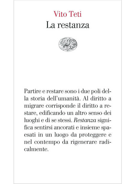 La «restanza» è un fenomeno del presente che riguarda la necessità, il desiderio, la volontà di generare un nuovo senso dei luoghi. È questo un tempo segnato dalle migrazioni, ma è anche il tempo, più silenzioso, di chi "resta" nel suo luogo di origine e lo vive, lo cammina, lo interpreta, in una vertigine continua di cambiamenti. La pandemia, l'emergenza climatica, le grandi migrazioni sembra stiano modificando il nostro rapporto con il corpo, con lo spazio, con la morte, con gli altri, e pongono l'esigenza di immaginare nuove comunità, impongono a chi parte e a chi resta nuove pratiche dell'abitare. Sono oggi molte le narrazioni, spesso retoriche e senza profondità, che idealizzano la vita nei piccoli paesi, rimuovendone, insieme alla durezza, le pratiche di memoria e di speranza di chi ha voluto o ha dovuto rimanere. La restanza non riguarda soltanto i piccoli paesi, ma anche le città, le metropoli, le periferie. Se problematicamente assunta, non è una scelta di comodo o attesa di qualcosa, né apatia, né vocazione a contemplare la fine dei luoghi, ma è un processo dinamico e creativo, conflittuale, ma potenzialmente rigenerativo tanto del luogo abitato, quanto per coloro che restano ad abitarlo. Partire e restare sono i due poli della storia dell'umanità. Al diritto a migrare corrisponde il diritto a restare, edificando un altro senso dei luoghi e di se stessi. Restanza significa sentirsi ancorati e insieme spaesati in un luogo da proteggere e nel contempo da rigenerare radicalmente.