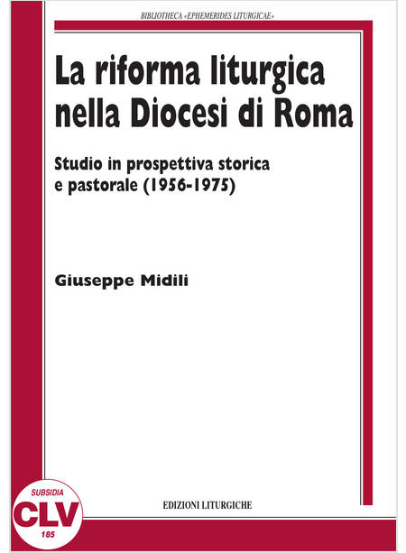 Il volume presenta la riforma liturgica a Roma nella sua dimensione storica e teologica, concentrandosi specificamente sul periodo più intenso del movimento liturgico e del Concilio, dal Congresso di Assisi (1956) alla visita di Paolo VI alla Diocesi (1975). Nel testo sono illustrate le scelte pastorali di quegli anni, attraverso un'analisi dei documenti d'archivio della Diocesi ed è proposta una rilettura organica del percorso che ha segnato la preparazione prossima e la pri- ma applicazione dei principi teologici e del modus celebrandi espressi dal Vaticano II.