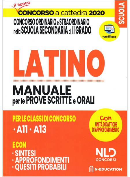 Una completa e compiuta fusione di conoscenze e competenze è quello che si chiede oggi alla nuova generazione di docenti che si preparano ad affrontare il nuovo Concorso a cattedra 2020: non è, dunque, solo una questione di contenuti, ma si lavora affinché il reclutamento sia capace di individuare, prima di ogni altra caratteristica, qualità o quantità di contenuti, l’autentica attitudine all’insegnamento. Alla luce di queste premesse, questo volume, dedicato alle classi di concorso A11 (Discipline letterarie e latino), A13 (Discipline letterarie, latino e greco), ha l’ambizione di proporsi come uno strumento per la preparazione al concorso completo, esaustivo, versatile e costruttivo.