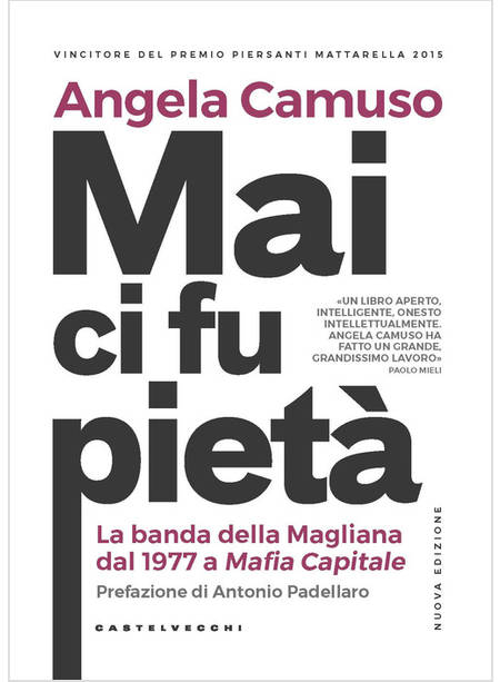 Una vicenda criminale che non smette di porre interrogativi inquietanti e le cui propaggini arrivano fino ad oggi, come svelato dall'inchiesta Mafia Capitale sulla nuova cupola capeggiata da Massimo Carminati. È la storia della banda della Magliana, un gruppo nato alla fine degli anni Settanta e composto agli inizi da malavitosi di borgata, figli maledetti del popolo e della miseria ma scaltri abbastanza per mettersi al servizio di poteri occulti, della mafia e delle frange eversive che miravano a destabilizzare il Paese. Scritto con il ritmo narrativo del romanzo e con una rigorosa aderenza ai fatti, Mai ci fu pietà ripercorre le tappe di un sodalizio che ancora ai nostri giorni occupa un posto di rilievo nell'olimpo della malavita imprenditoriale. Angela Camuso, che ha attinto per il suo lavoro a centinaia di documenti giudiziari, compresi quelli di Mafia Capitale, fa parlare i protagonisti senza omettere nomi, luoghi e circostanze in una sequenza agghiacciante di delitti e misteri: dall'omicidio del giornalista Mino Pecorelli al sequestro Moro, dal rapimento di Emanuela Orlandi alla misteriosa morte, nel 2012, di Angelo Angelotti, il bandito che tradì Renatino De Pedis.