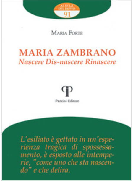 L'esilio è l'evento fondamentale che ha segnato la biografia della filosofa spagnola Maria Zambrano. Nella stretta connessione tra pensare e vivere, esso diviene anche il concetto fondamentale della sua riflessione filosofica, la traccia su cui prende forma un pensiero delirante, capace di svegliarsi e di incontrare la vita con tutto ciò che non entra nella coscienza desta. Pensare l'esilio pone in stato di crisi la razionalità dialettica occidentale: il "carcere del concetto" lascia il posto al linguaggio della nascita. Si apre alla generatività che "concepisce" e mette al mondo il mondo, accogliendo tutto ciò che nasce semplicemente perchè è nato.