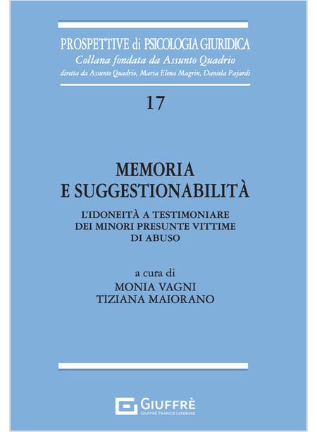 Tema centrale del manuale è la relazione tra memoria, suggestionabilità e i possibili fattori di distorsione interni ed esterni al minore testimone, fulcro della valutazione dell’idoneità a testimoniare. Alla luce della più recente letteratura e aggiornamento normativo, vengono illustrati l’inquadramento giuridico dell’Ascolto del minore, gli elementi di psicologia della Testimonianza e i meccanismi alla base delle funzioni cognitive ed emotive, fornendo indicazioni sul come valutare tali abilità in ambito forense sulla base delle più recenti teorie ed evidenze scientifiche. Particolare attenzione è rivolta all’illustrazione pratico operativa dell’assesment della valutazione della suggestionabilità immediata e differita attraverso la presentazione di un protocollo metodologico strutturato, applicato in ambito clinico peritale e di ricerca. Viene altresì fornita una attenta analisi della relazione tra suggestionabilità e diverse variabili psicologiche, con un approfondimento particolare alle confabulazioni, memoria autobiografica, abilità narrative, trauma e uso di sostanze psicotrope. Il volume è rivolto non solo a psicologi, consulenti tecnici e periti, ma anche a operatori del diritto, giudici, magistrati e avvocati come strumento che possa aiutare a comprendere i meccanismi psicologici sottesi alla suggestionabilità e Testimonianza sullo sfondo della più recente letteratura scientifica.