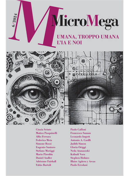 Dove ci condurrà lo sviluppo dell'Intelligenza Artificiale? Ma è poi corretto chiamarla "intelligenza"? E quanto è davvero "artificiale"? Dietro la sigla "IA", che sembra molto immateriale, si cela tanto lavoro di umani in carne e ossa. In questo volume, senza abbandonarci a catastrofismi irrazionali né tantomeno a ingenui entusiasmi tecnologici, analizziamo con sguardo laico e critico quella che potrebbe essere una vera e propria rivoluzione. O forse no. Con contributi di: C. Sciuto, M. Pasquinelli, A. Ferrara, F. Meta, S. Rossi, E. Santoro, S. Moriggi, M.Pireddu, D.Andler, A.Fairhall, F. Bartoli, P. Caffoni, F. Suman, L. Impett, A. A. Casilli, J. Simon, G. Origgi, N. Atanasoski, K. Vora, S. Holmes, B. Agüera y Arcas, P. Ercolani.