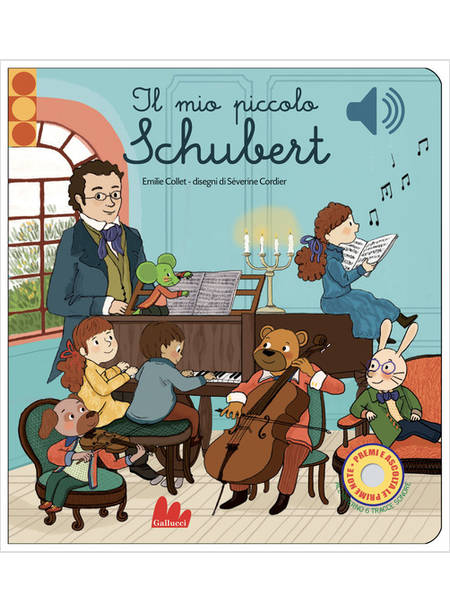 Le melodie più celebri di Schubert risuonano a ogni apertura del libro, per farsi scoprire e danzare dai più piccoli. Basterà attivare uno dei sei sensori con un dito per farsi travolgere dall'allegria di brani come l'"Aria russa" e la "Marcia militare", o restare incantati dalla maestosa "Ave Maria". Età di lettura: da 1 anno.