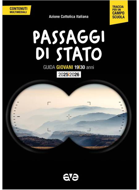 Passaggi di stato è la nuova guida per i gruppi Giovani (19-30 anni) di Azione Azione Cattolica Italiana Cattolica, ispirata all'icona biblica dell'anno «Signore, è bello per noi essere qui!» (Mt 17,1-9). Nella Trasfigurazione, Cristo si rivela pienamente fedele alla propria missione: non cambia, ma si manifesta nella sua verità. Così anche i giovani sono chiamati ad attraversare i passaggi della vita come occasioni di trasfigurazione, in cui più che chiedersi che cosa cambia, vale la pena sostare su cosa rimane. Il percorso si sviluppa attorno a cinque monti biblici, luoghi simbolici in cui fare esperienza di Dio: mobilità e restanza, silenzi e parole, attrazione e somiglianza, terra e cielo, incompiutezza e progettualità. Passaggi che possono assumere direzioni e movimenti diversi per ciascuno e ciascuna, passaggi di stato simili a quelli dell'acqua in montagna: qualcosa passa e cambia, eppure resta la fedeltà alla nostra vocazione e alla promessa d'amore che Dio ha per noi.Passaggi di stato propone spunti, attività, laboratori, videolectio e videotestimonianze, insieme a materiali utili come la traccia per il campo scuola, consultabili su materialiguide.azionecattolica.it.