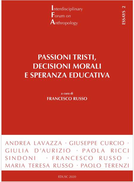 Una via di uscita dalla palude dello sconforto. Questo è l’obiettivo indicato dagli autori del presente libro, come spiega bene Andrea Lavazza nella sua Presentazione. Le “passioni tristi”, diagnosticate da M. Benasayag, sono qui analizzate nella loro forma di crisi nella trasmissione generazionale, di antiautoritarismo istintivo, di eccessive pretese funzionalistiche dinanzi a un futuro percepito come minaccioso e di commercializzazione della cultura. Gli autori, però, puntano soprattutto al superamento di tale situazione e si avvalgono delle proprie competenze di psicologia, etica, antropologia e sociologia: prospettano, quindi, le pratiche gioiose che, in una visione antropologica integrale, possono condurre oltre la delusione e l’abbandono. Vi sono contenuti saggi di A. Lavazza, G. Curcio, G. D'Aurizio, P. Ricci Sindoni, F. Russo, M.T. Russo e P. Terenzi.