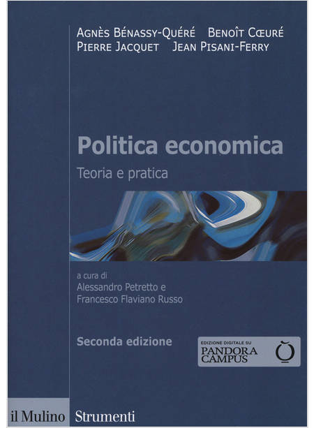 Il manuale fornisce gli strumenti teorici e metodologici per comprendere le questioni principali che la politica economica deve affrontare nel contesto economico globale alla luce anche degli eventi degli ultimi anni, dalla crisi finanziaria alla recessione seguita alle difficoltà dei debiti sovrani nell'Eurozona. La seconda edizione aggiornata tiene conto, tra l'altro, delle trasformazioni recenti delle politiche di bilancio e monetaria e introduce il tema innovativo della stabilità finanziaria. In merito alle politiche per la crescita, particolare attenzione è dedicata al tema cruciale delle disuguaglianze.