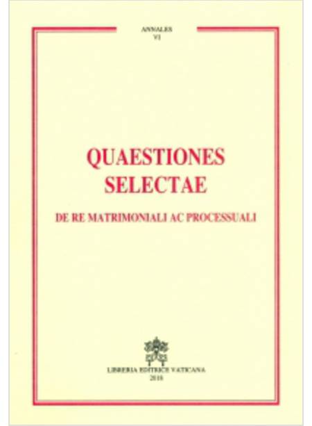 Home > Libri Italiani > Libri Religiosi > Diritto > Canonico > Matrimoniale > Quaestiones Selectae De Re Matrimoniali Ac Processuali