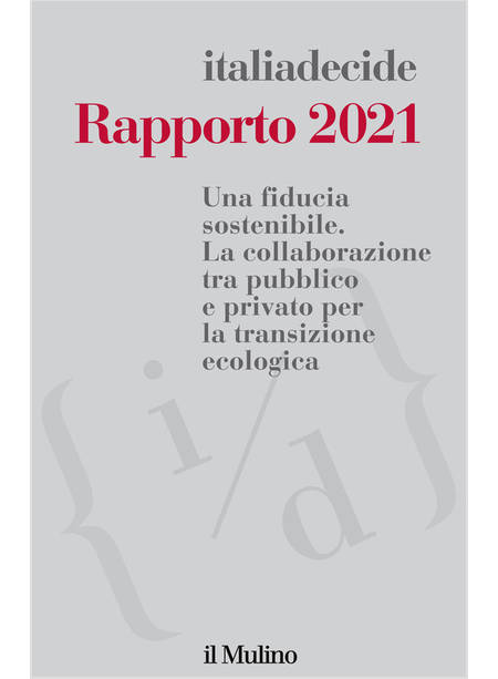 Il Rapporto 2021 di italiadecide prosegue la riflessione avviata nel 2019 e dedicata alla fiducia reciproca tra pubblico e privato. Le relazioni di leale collaborazione tra operatori economici, organizzazioni e istituzioni sono la leva strategica per lo sviluppo del Paese. Opportunità e criticità di questa relazione sono qui analizzate in funzione della transizione ambientale. Questo processo, da un lato promette nuovi equilibri e nuove opportunità di crescita e di benessere, dall'altro lato comporta crescenti incertezze e timori per il futuro, conflitti di valori e di interessi, rischi di aggravare le disuguaglianze esistenti e di crearne di nuove. Per avviare concretamente e in tempi misurabili il Green New Deal è pertanto necessario riaffermare il dialogo e il reciproco riconoscimento tra società e istituzioni, per costruire una visione comune fondata sulla consapevolezza di una responsabilità diffusa. Alla base di questo processo c'è il rafforzamento della fiducia nella democrazia, indispensabile per costruire una cittadinanza sociale sostenibile.