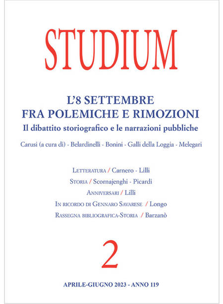Descrizione di "STUDIUM APRILE/GIUGNO 2023 L' 8 SETTEMBRE FRA POLEMICHE E RIMOZIONI"
